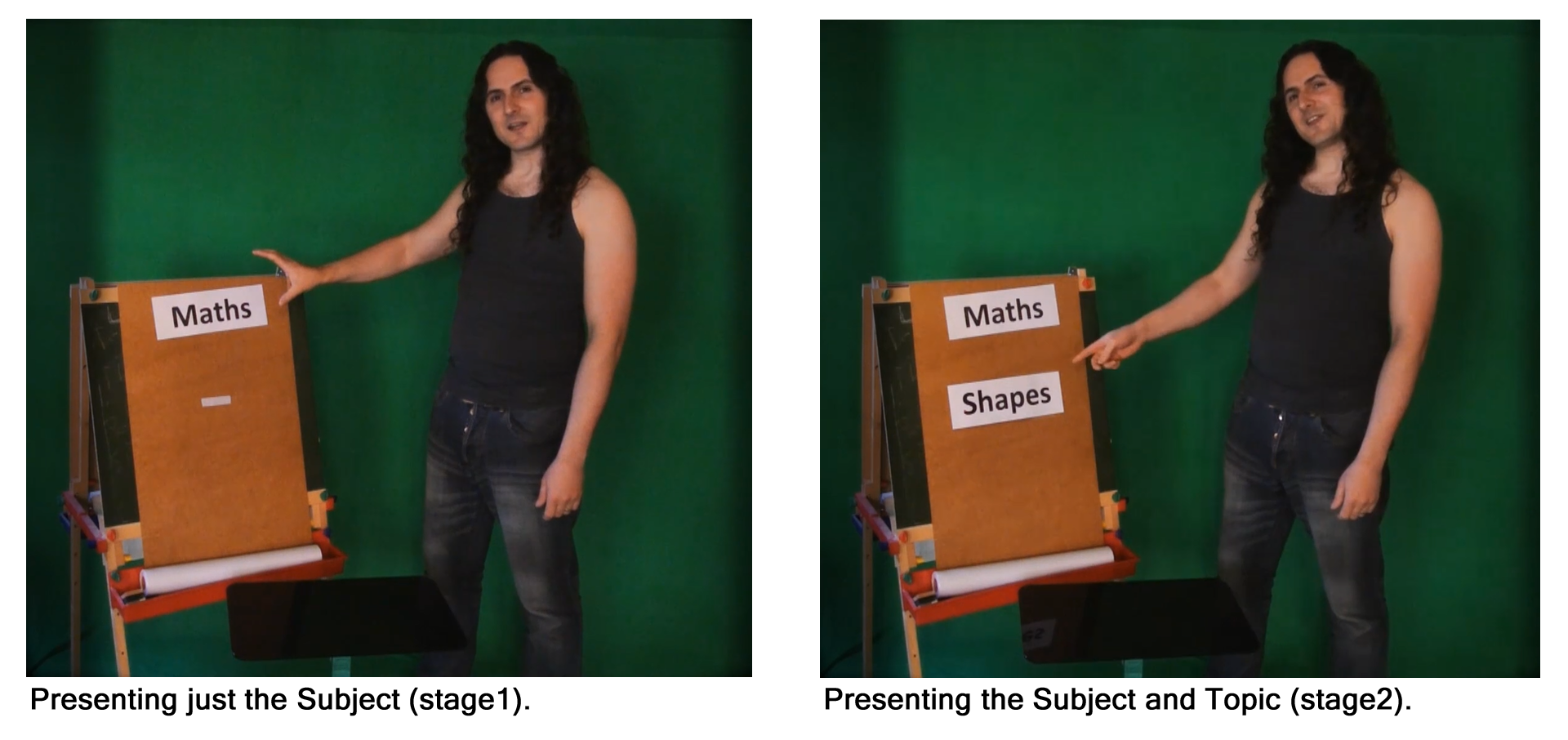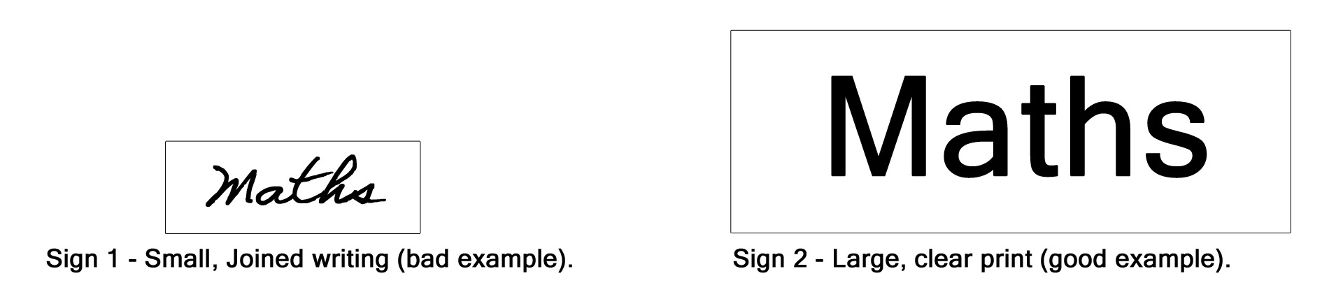 2. Place this information (the first sign e.g. ‘Maths’) on a clear flat surface like a desk or table in front of the student.